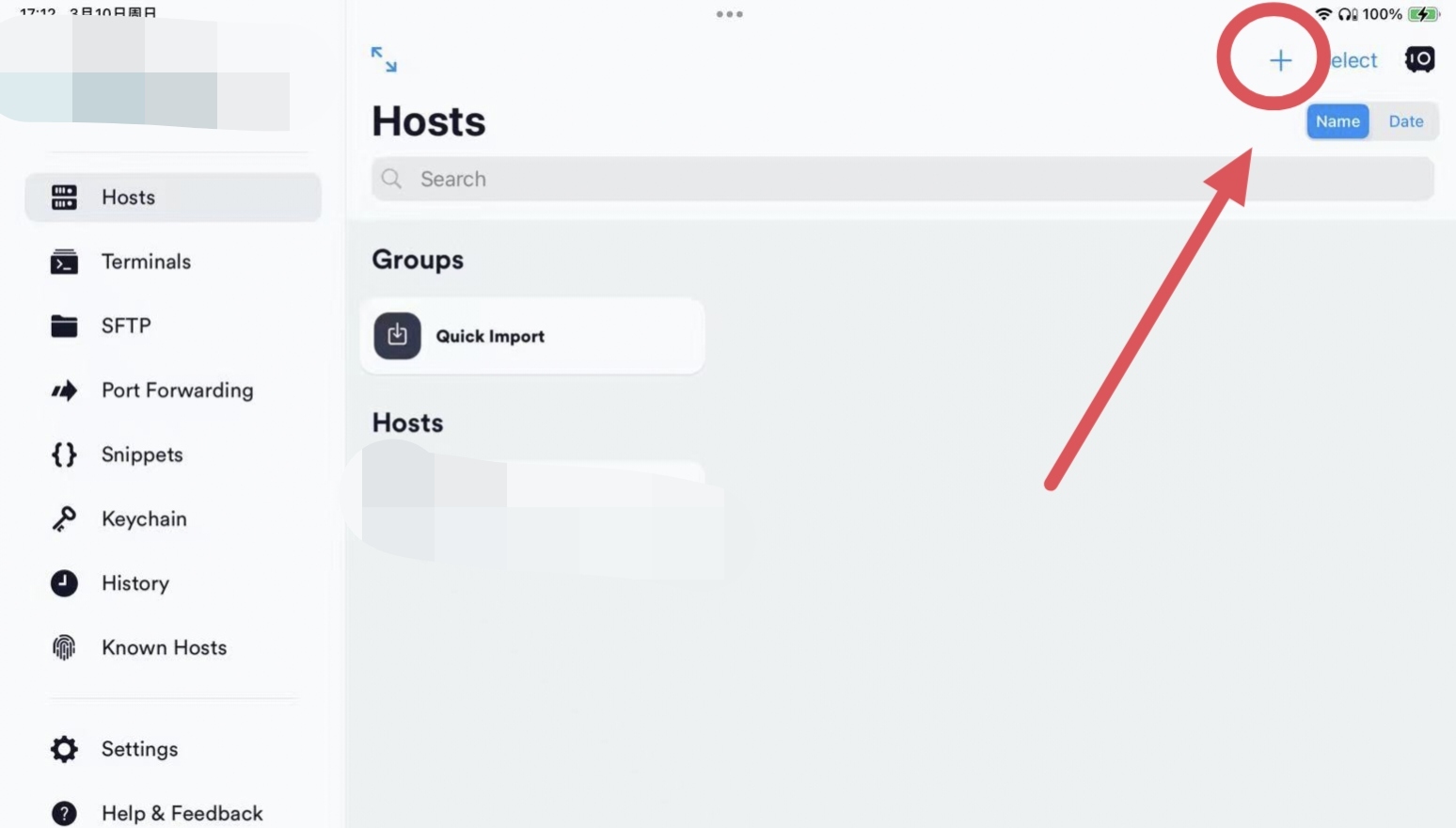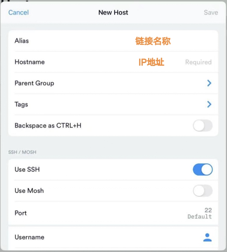 Termius 是一个非常好用的 SSH 客户端,免费版就已经提供了 SSH 功能,满足我们连接并操作 Archlinux 的需求。IOS 通过 appstore 下载,Andriod 通过 google play 商店下载,这里以 ipad 设备为例对 archlinux 设备进行访问。在 termius 的设置中要输入连接名称 alias (随便取)、IP 地址(这里你要访问设备的 Managed IP 地址,在 Zerotier 配置页面)、SSH 端口号、用户名与密码。